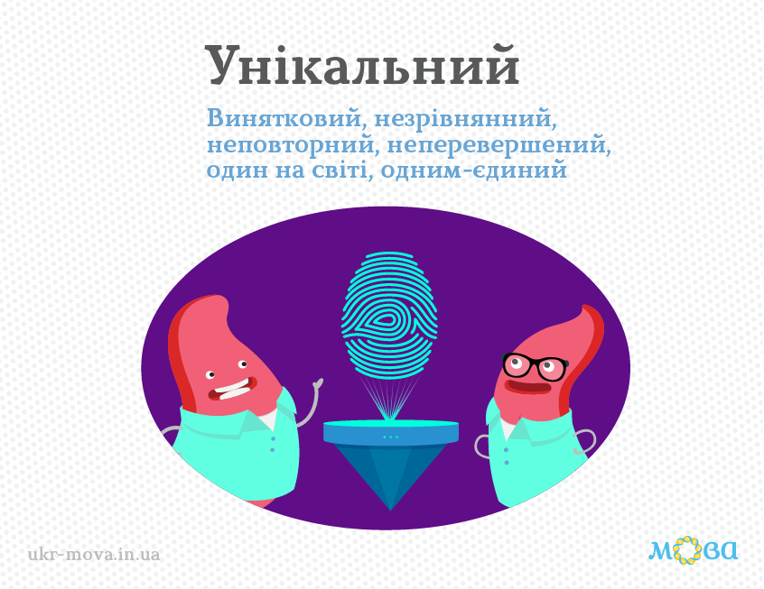 Слово "унікальний" не "уникальное" в украинском языке и имеет много синонимов.