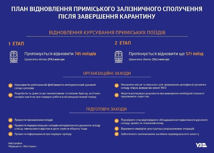 Кроме того, в контексте вышеописанного трехэтапного плана, "Укрзализниця" разработала свой двухэтапный план запуска железнодорожного транспорта.