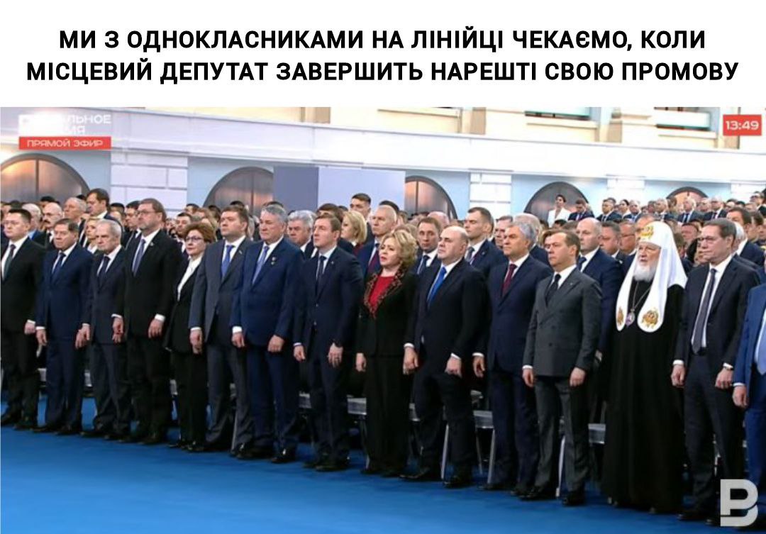 В частности под "удар" шутников попали постные лица присутствующих, которые с трудом сдерживали зевки. Некоторые откровенно боролись со сном, а кое-кто, в частности, бывший президент РФ Дмитрий Медведев проиграл эту борьбу и уснул.