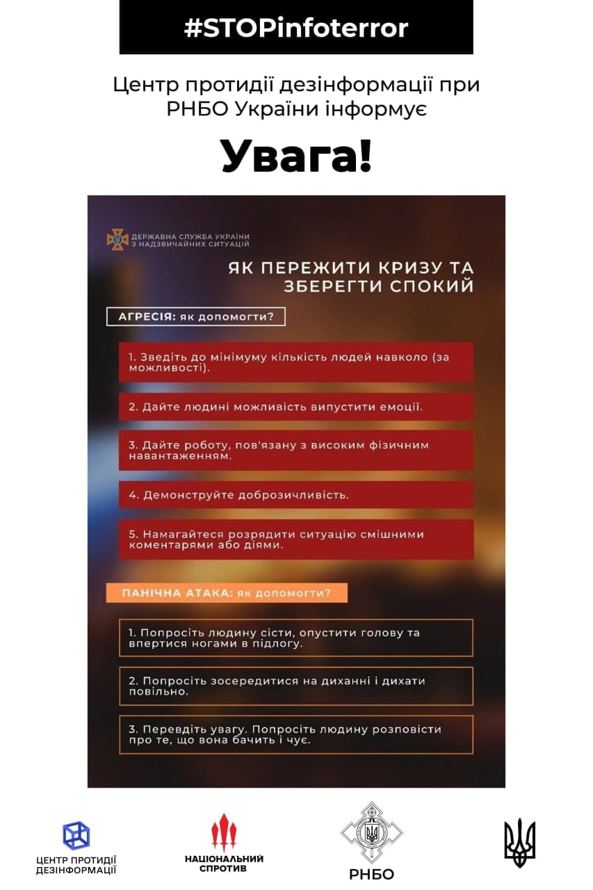 О том, как пережить кризис и сохранить спокойствие, рассказывает Центр противодействия дезинформации при СБНП Украины.