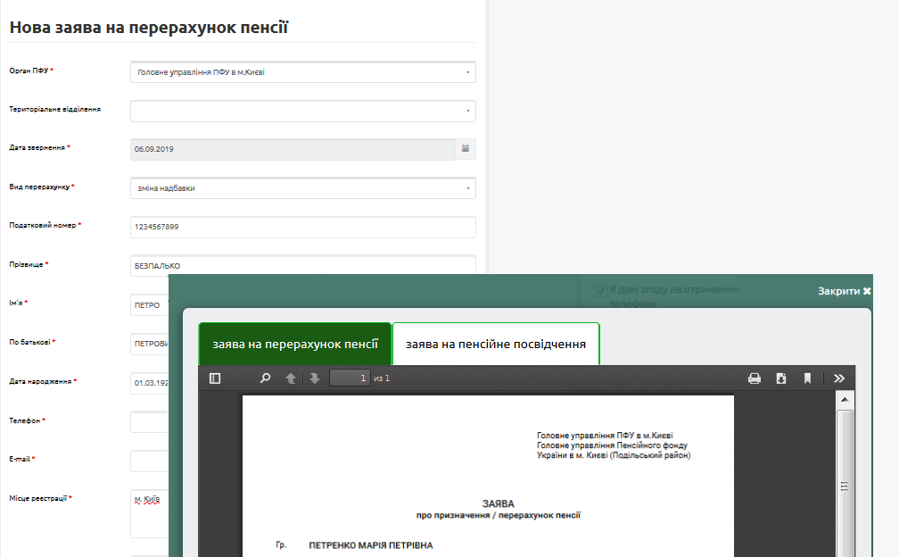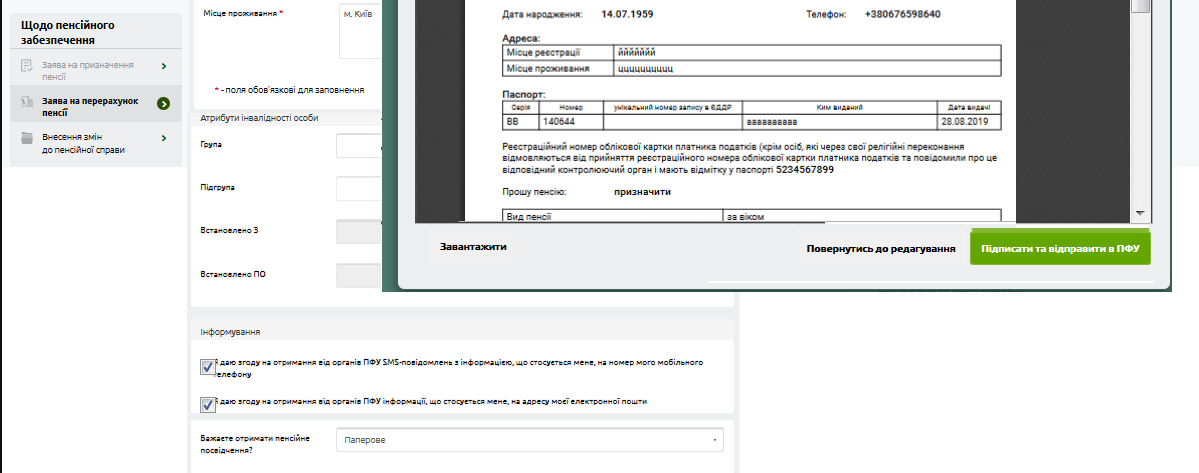 На портале пенсионного фонда Украины с помощью электронной цифровой подписи, есть возможность сформировать и подать заявление на перерасчет пенсии. Кроме того, можно изменить способ и место получения выплат.