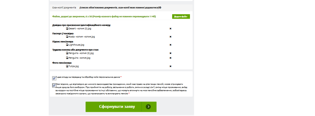 • добавить скан-копии документов, которые являются обязательными для заявления, и дополнительно тех документов, которые пользователь считает необходимым;