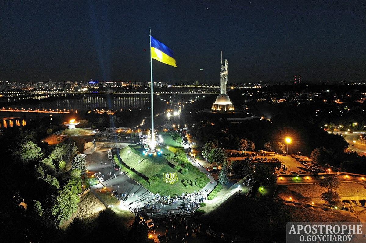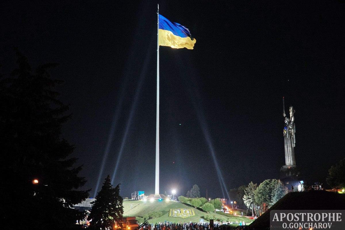 В субботу, 22 августа в 20:30 в Киеве состоялась торжественная церемония поднятия самого большого Государственного Флага Украины в стране. Событие приурочили ко Дню Государственного Флага Украины и очередной годовщине Независимости Украины.