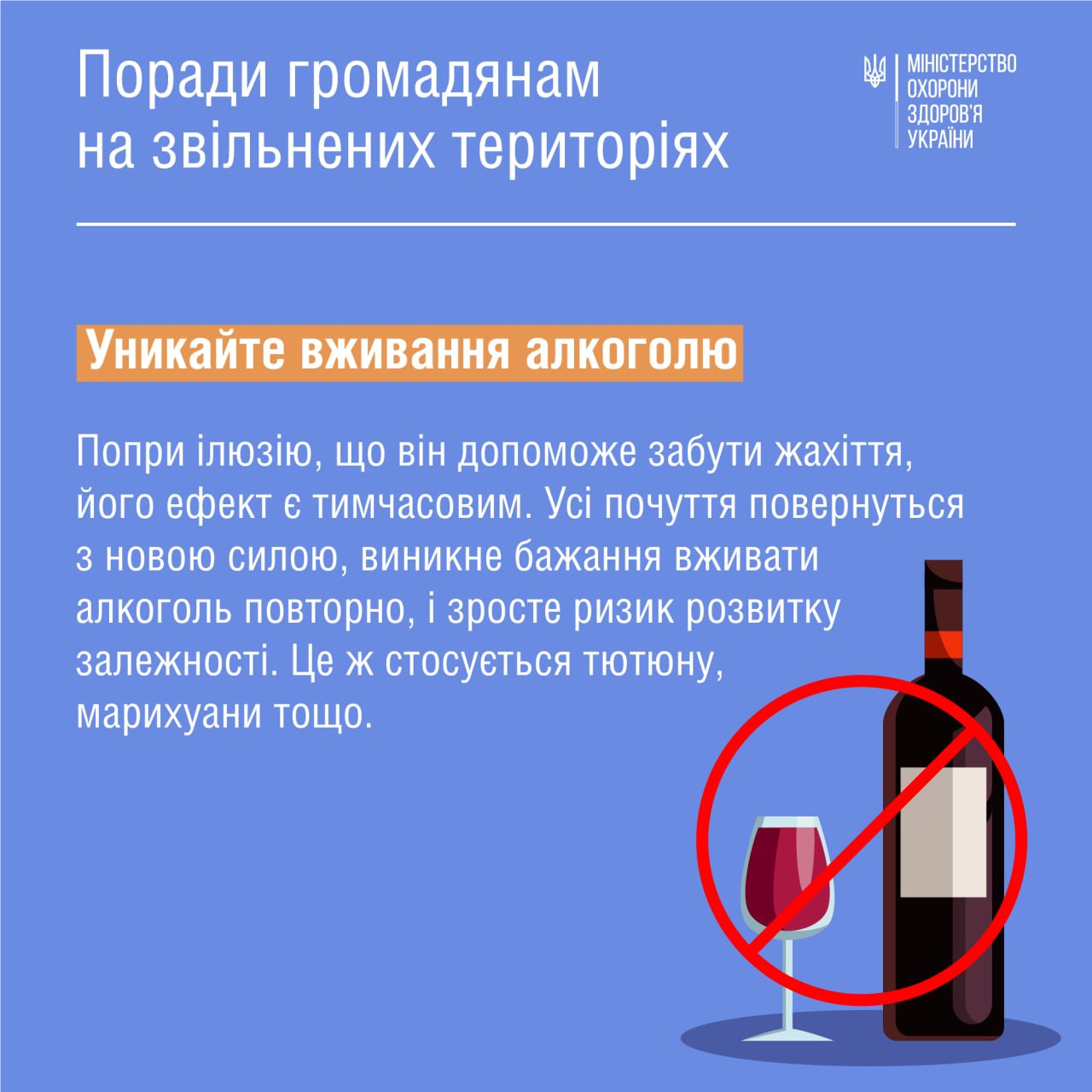 4. Не употреблять алкоголь, наркотики. Хотя это может казаться верным способом пережить ужасы оккупации, эффект не будет от него длинным, на трезвую голову боль вернется с новой силой, а потому велик риск алкогольной или любой другой зависимости.
