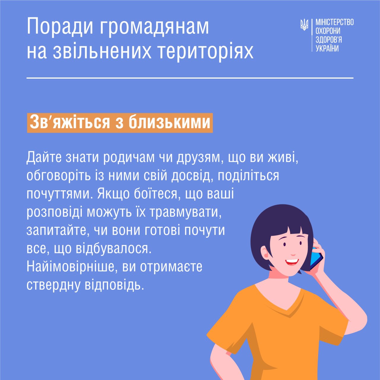 3. Связь с близкими. Родственники и близкие люди также беспокоятся о тех, кто остался в оккупации. При освобождении от захватчиков нужно дать знать им, что вы живы, обсудить свой опыт хотя бы кратко, а также не стоит стыдиться проявления своих чувств. Но если человек переживает, нужно ли рассказывать травматический опыт, готовы ли к этому родственники и друзья, тогда нужно спросить их перед рассказом об этом.