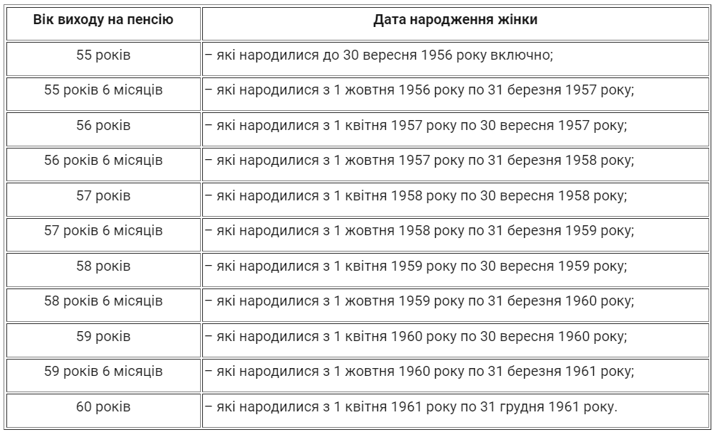 До достижения 60-летнего возраста, право на пенсию по возрасту при наличии соответствующего страхового стажа имеют женщины 1961 рождения и старше после достижения ими такого возраста: