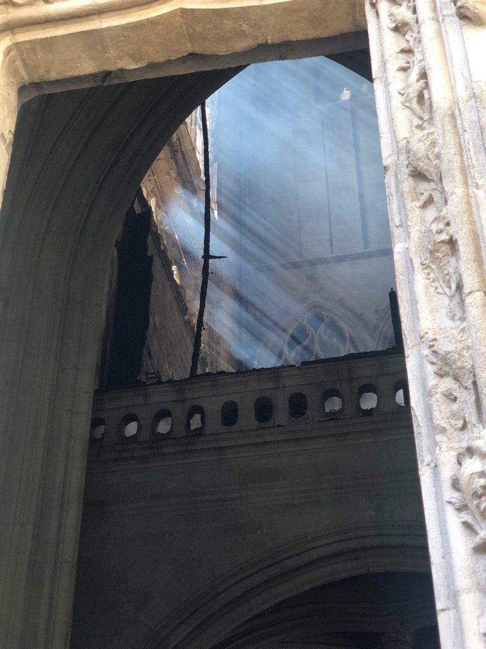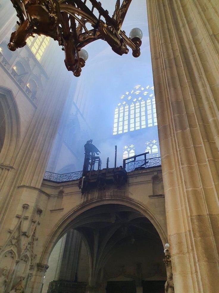 Пожаром полностью уничтожен главный орган 1620 года, построенный великим мастером Жаком Жирарде. Испорчены и витражи восточного фасада XV века.