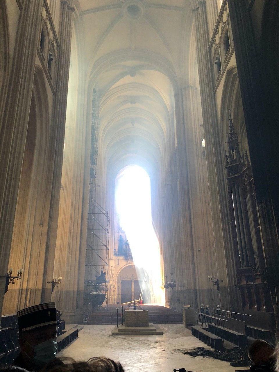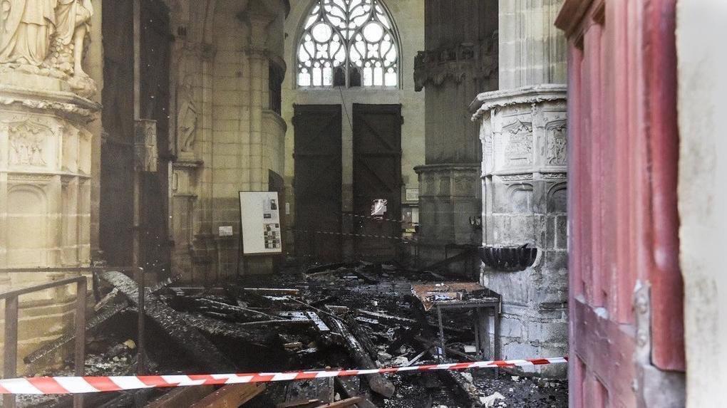 Прокуратура в Нанте подозревает, что собор могли поджечь, полиция ведет расследование.