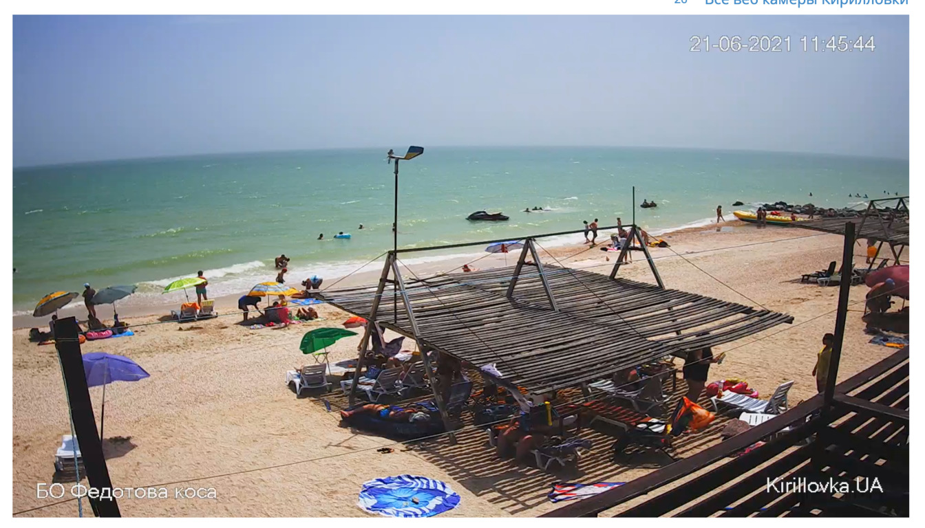 Веб-камеры, расположенные с видом на пляжи Кирилловки и окружающих курортных поселков, показывают ситуацию в режиме реального времени со звуком.