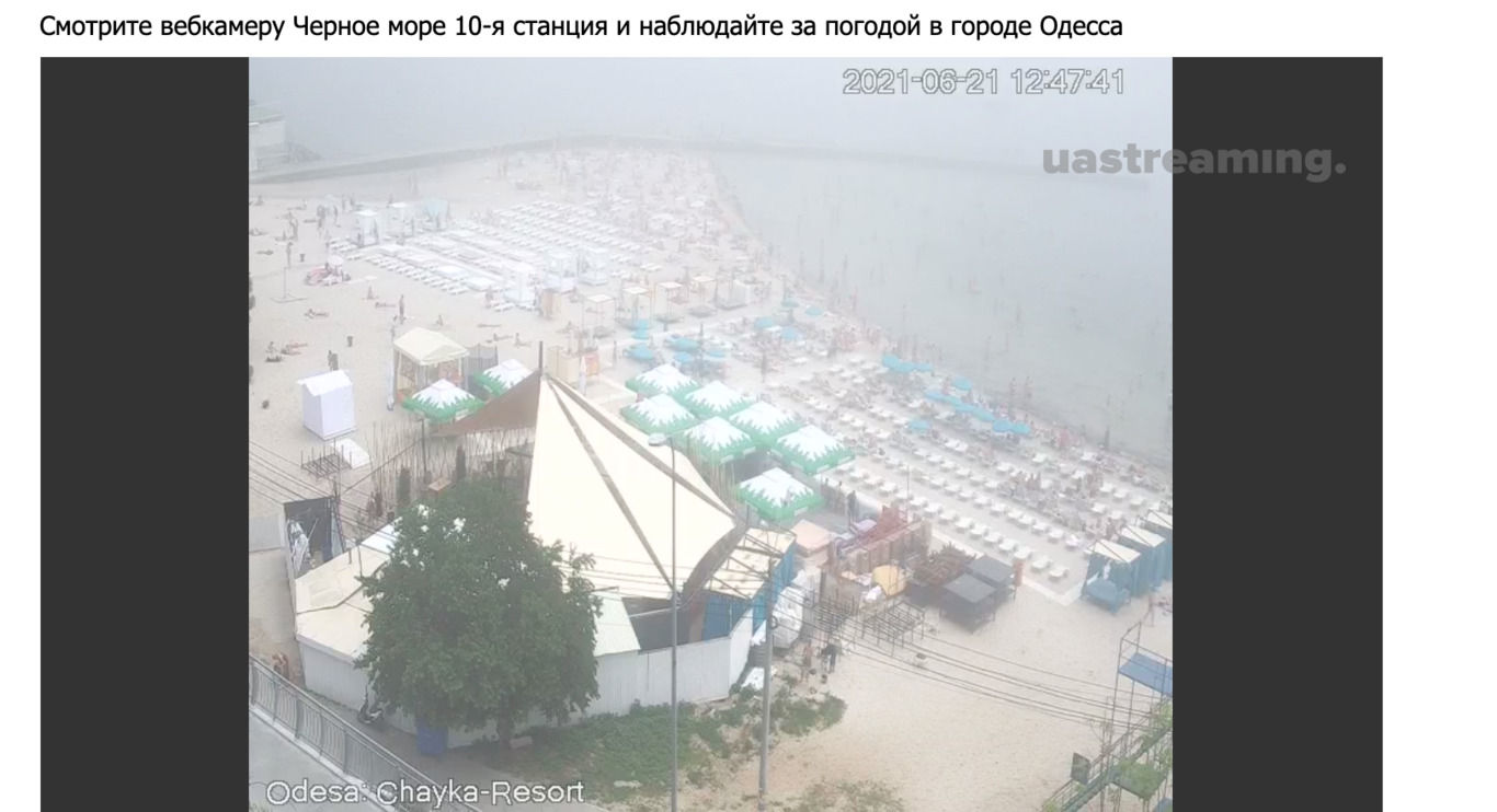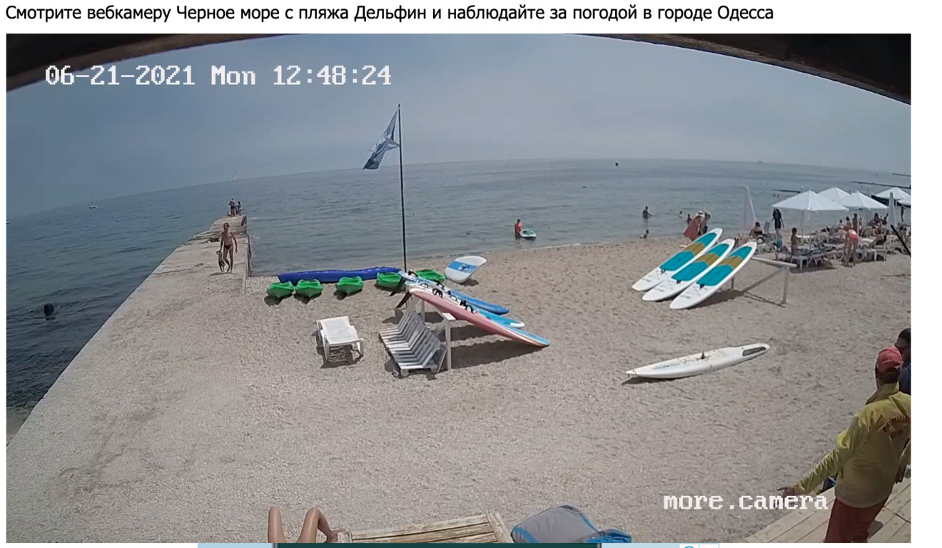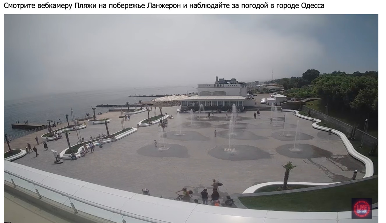 Как видно по камерам, в Одессе сегодня облачно и серо, но это не мешает туристам отдыхать на Черном море.