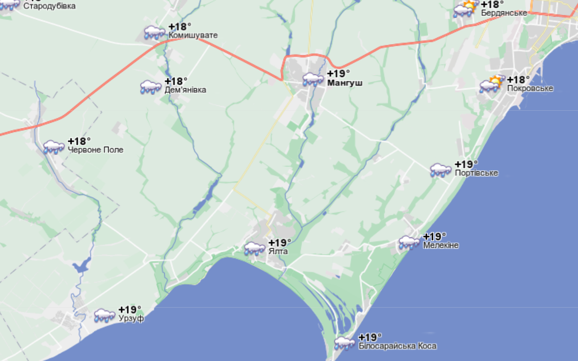На курортах вблизи Мариуполя 17 июня ожидаются дожди с грозами, температура поднимется до +22. Вода прогрелась до +20.