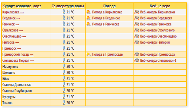 "Апостроф" публикует актуальную информацию о погоде на крупнейших курортах Азовского моря и о температуре воды на них.