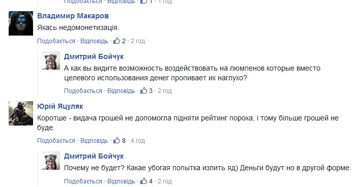 Вместе с тем, другие пользователи не видят в инициативе Кабмина особой проблемы, отмечая, что правительству необходимо иметь какой-то рычаг для воздействия на тех, кто пропивает деньги на субсидии.