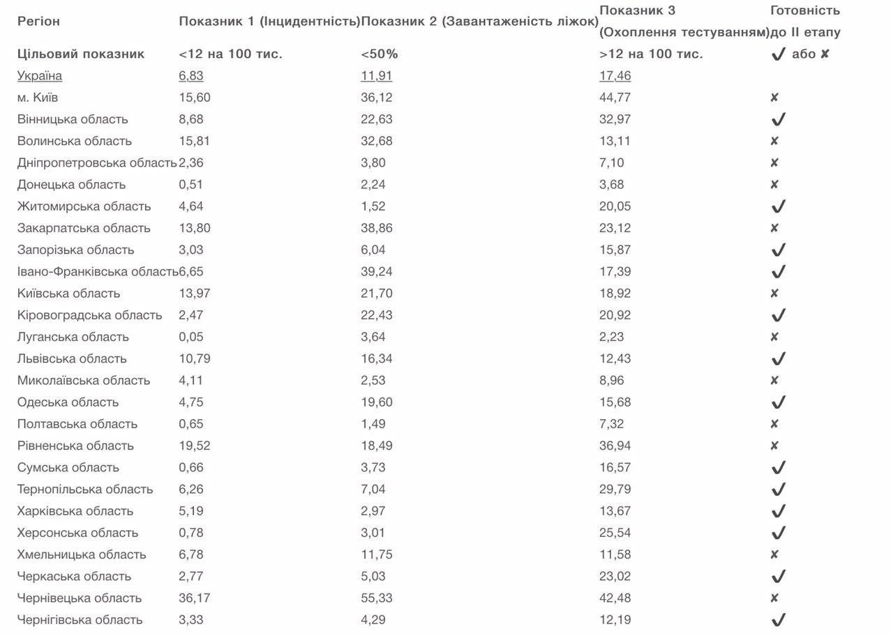 Кроме того, по разным причинам не готовы к ослаблению карантина в Днепропетровской, Донецкой, Закарпатской, Киевской, Луганской, Николаевской, Полтавской, Ровенской, Хмельницкой и Черновицкой областях. В общем в Украине в Минздраве считают неготовыми к введению адаптивных условий 11 областей и город Киев.