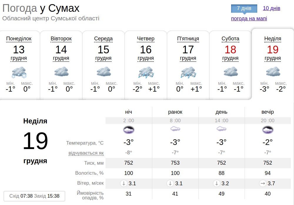 В Сумах солнце в этот день будет редко показываться из-за облаков. Без осадков. Температура днем – 2 градуса, а ночью -3 градуса.