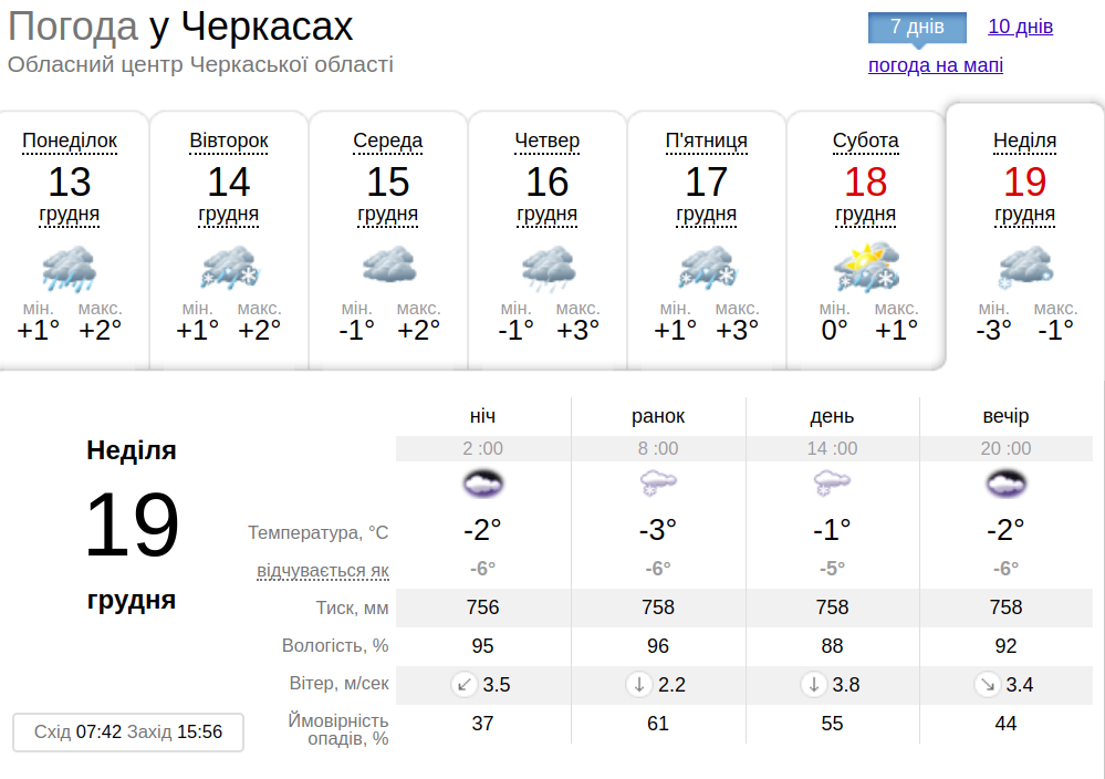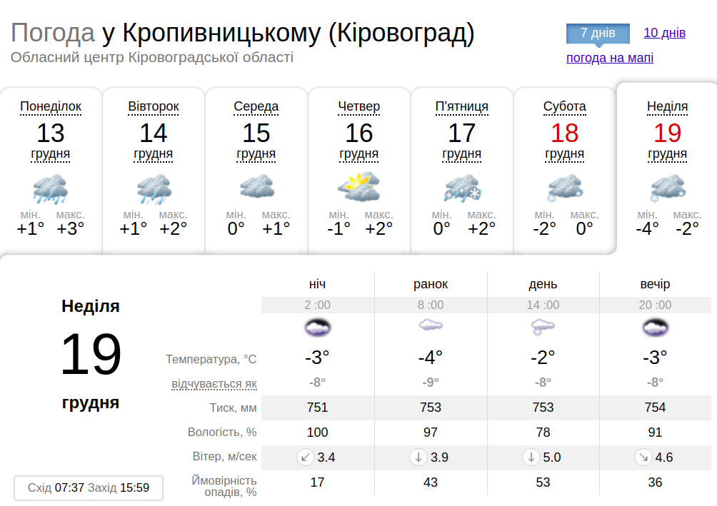 "19 декабря будет незначительное похолодание, ночью минус, днем немного теплее. Незначительные осадки, но под ногами не будет хлюпать", – уточнил он.