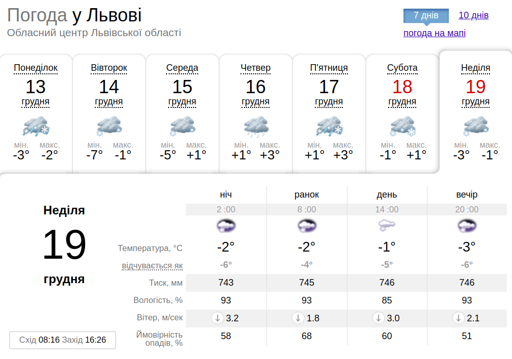 По данным сервиса Sinoptik, 19 декабря почти по всей территории Украины ожидаются небольшие осадки – от дождя до снега.