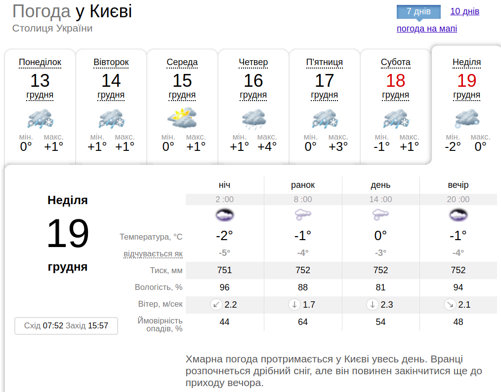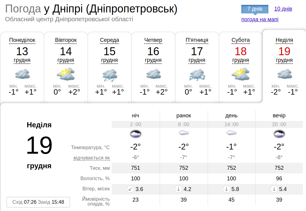 В Днепре солнце в этот день будет редко показываться из-за облаков. Без осадков. Температура днем – 1 градус, а ночью -2 градуса.