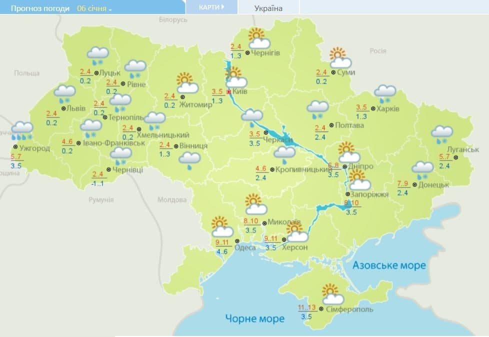 Погода в Украине 6 января