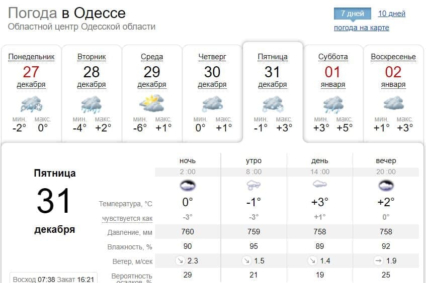 В Одессе облачная погода продержится весь день. Утром будет идти снег. Днем и вечером осадков не ожидается. Температура днем будет +3 градуса, а вечером +2.