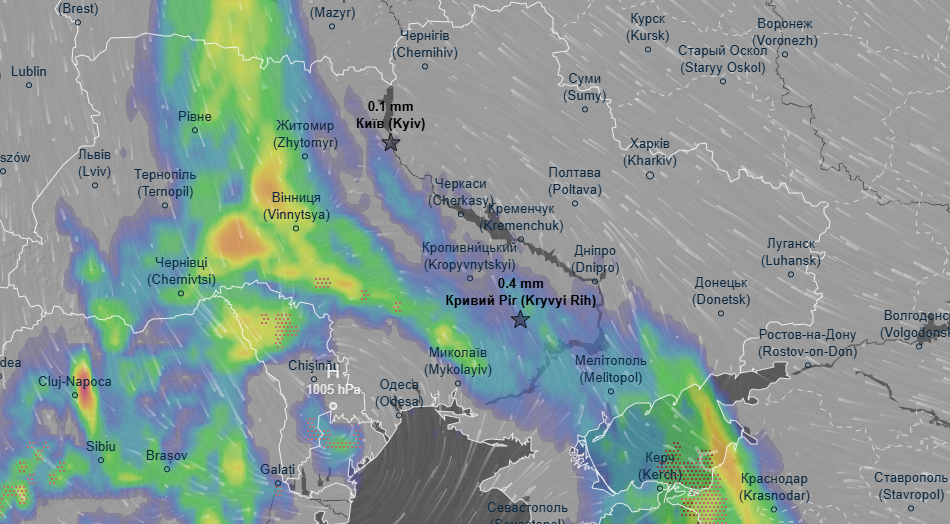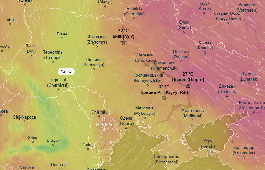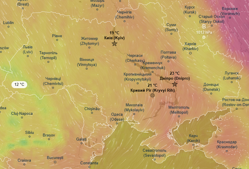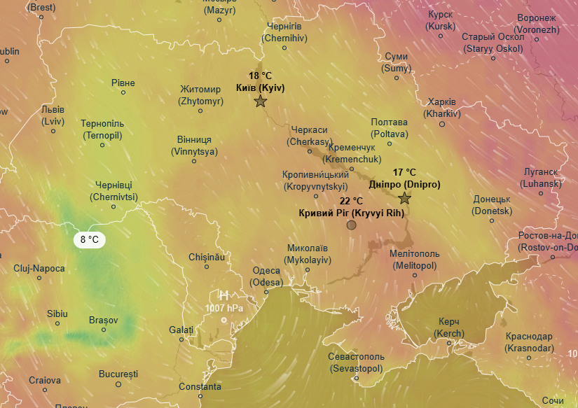Об этом свидетельствуют данные метеоресурса Ventusky.