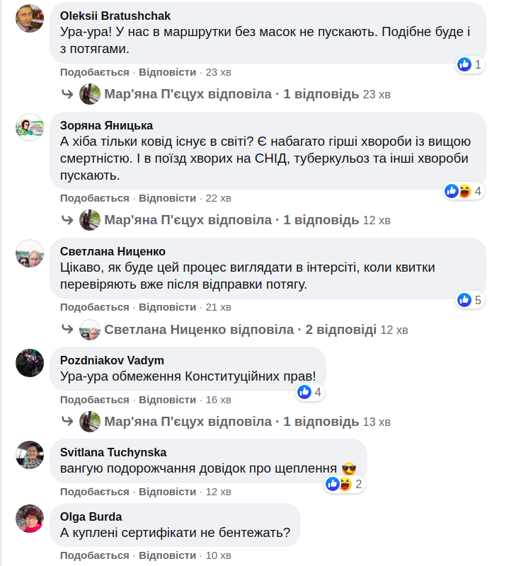 Люди массово возмущаются и жалуются, называя это "дурдомом". Особенно возмущения касаются запрета не вакцинированным гражданам на проезд межобластным пассажирским транспортом, - передает портал "Апостроф".