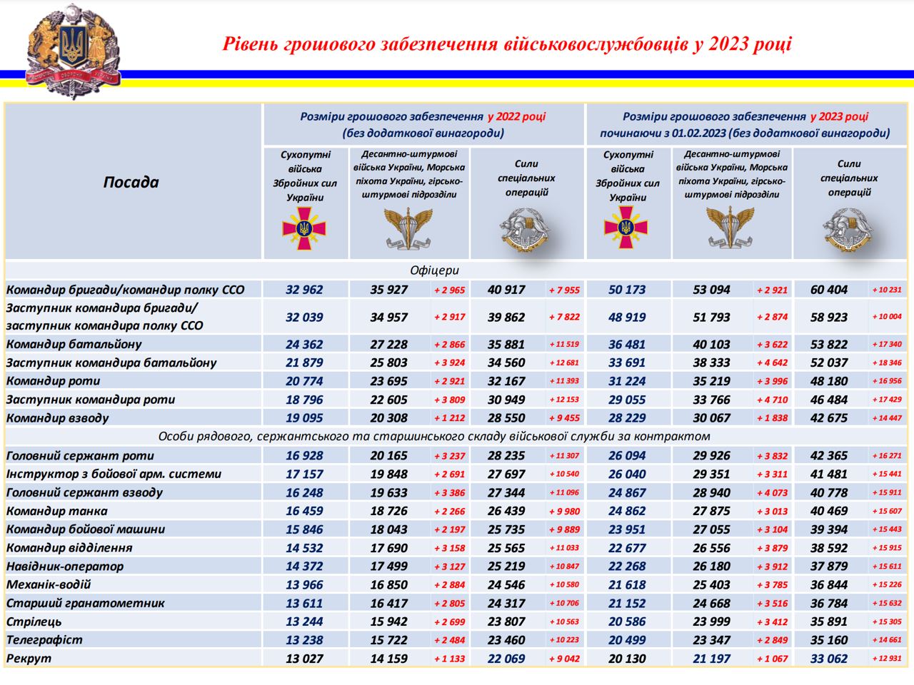 Кроме этого опубликована разъяснительная таблица с разъяснением относительно обеспечения военнослужащих Сухопутных войск ВСУ.