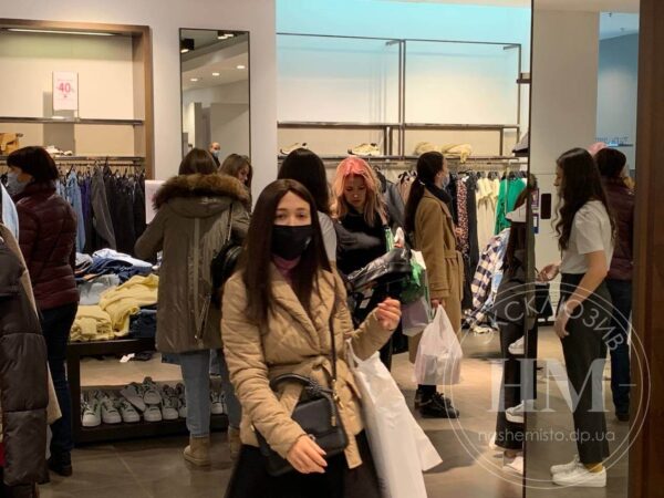 В наиболее популярных ТРЦ Днепра в этот день было немноголюдно - вероятно, из-за карантина и связанных с ним ограничений жители города решили не толпиться в магазинах в погоне за товарами по скидке.