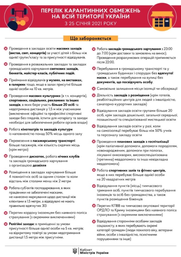 25 января на территории Украины завершается введенный из-за коронавирусной пандемии локдаун.