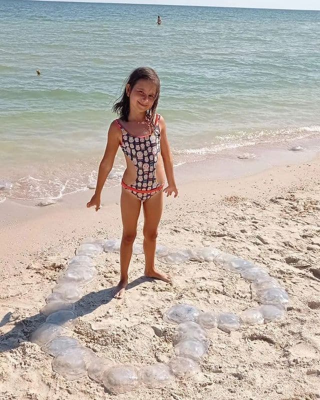 За 1 сентября также выставили фотографию с медузами на песочном пляже, которыми выложили сердце.