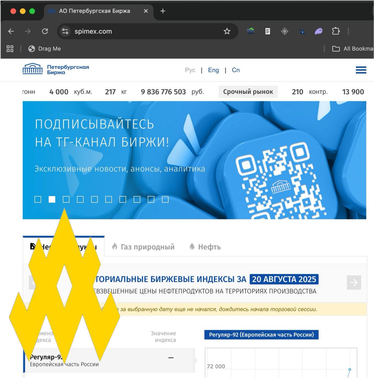 Речь идет о крупнейшей площадке организованных торгов в России, через которую осуществляется 99% операций с нефтью, газом, углем, металлами, древесиной, строительными материалами и сельскохозяйственной продукцией.