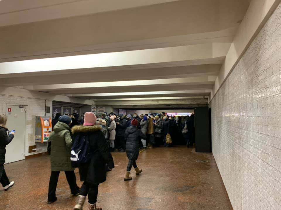 Из-за ухудшения погодних условий многие жители украинской столицы стали более активно пользоваться столичным метрополитеном, на станции "Контрактовая площадь" организовалась огромная пробка.