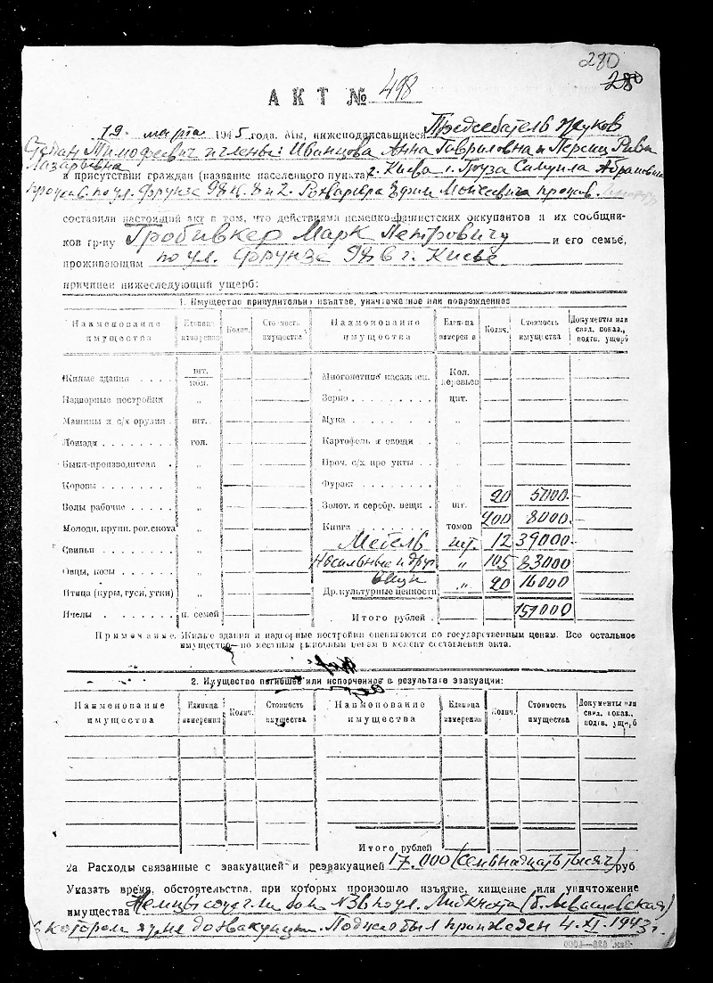 Мемориальный центр Холокоста "Бабий Яр" в рамках проекта "Имена" оцифровал архив Чрезвычайной государственной комиссии по выявлению преступлений и убытков, которые были нанесены нацистским режимом жителям Киева и Киевской области в период оккупации 1941-1943 годов.