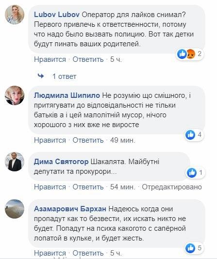 Публикация видео вызвала бурную реакцию в соцсети. Возмущенные комментаторы обращают внимание на отсутствие воспитания со стороны родителей и предполагают, что такие дикие развлечения рано или поздно закончатся для детей плачевно.