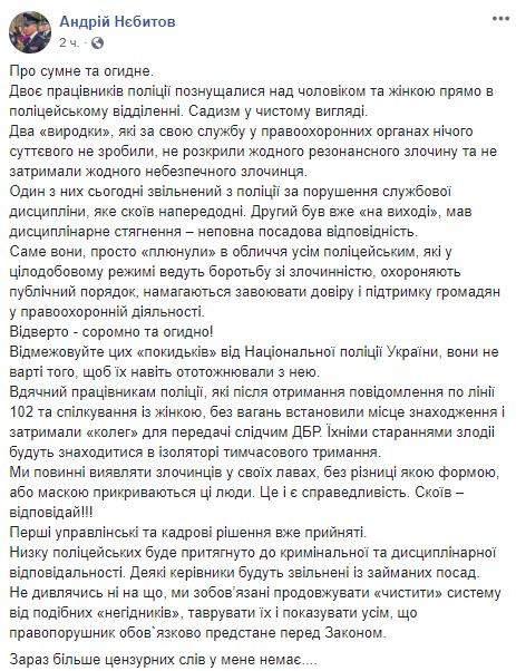 В полиции резко отреагировали на скандал в Нацполиции, двое копов в городе Кагарлык Киевской области поиздевались над мужчиной и женщиной прямо в полицейском отделении.