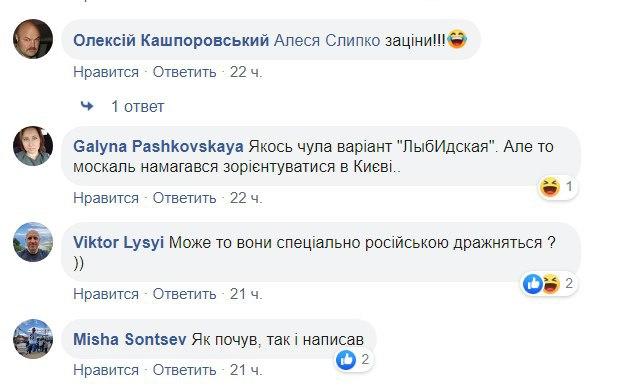 "Может это они специально на русском дразнят?", "От "лИбитимь" происходит, по-видимому", "Оно им Либиця", "Однажды слышала вариант "Лыбидская". Но это москаль пытался сориентироваться в Киеве", "Услышал, так и написал", - пишут они.