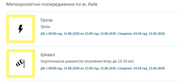 В субботу вечером, 13 июня, на Киев надвигается непогода - гроза и сильный ветер.
