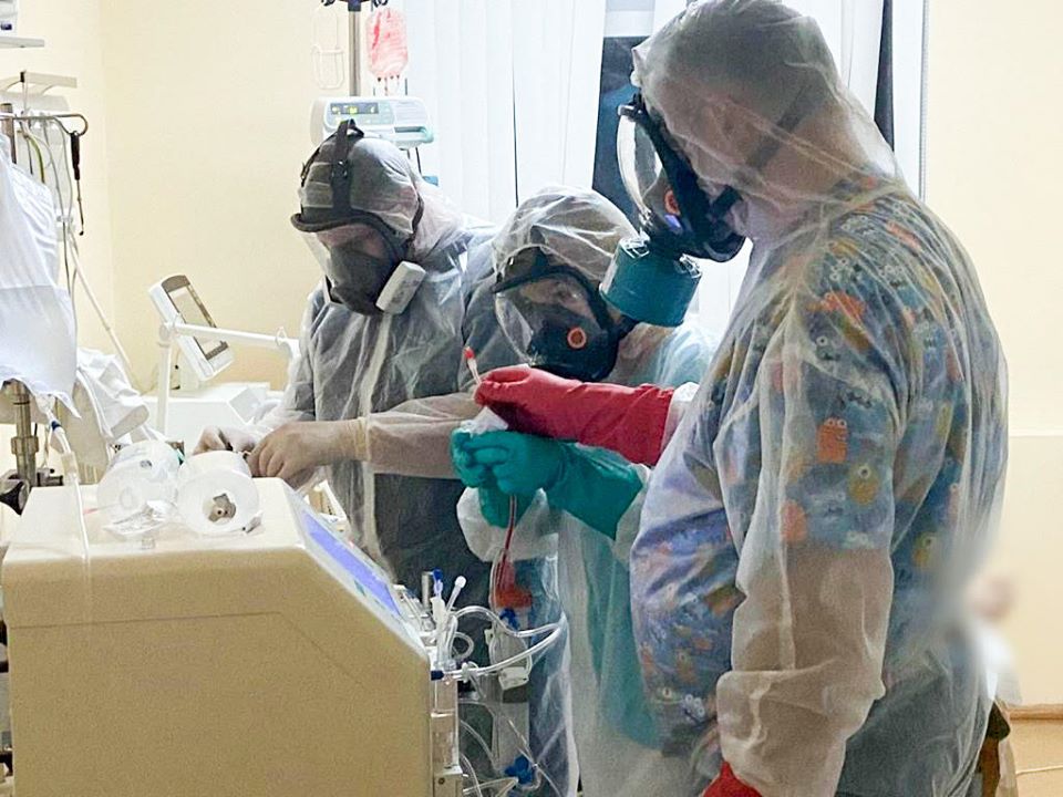 В Александровской больнице в Киеве врачи борются за жизнь пациентов в тяжелом состоянии, которые заражены коронавирусом.