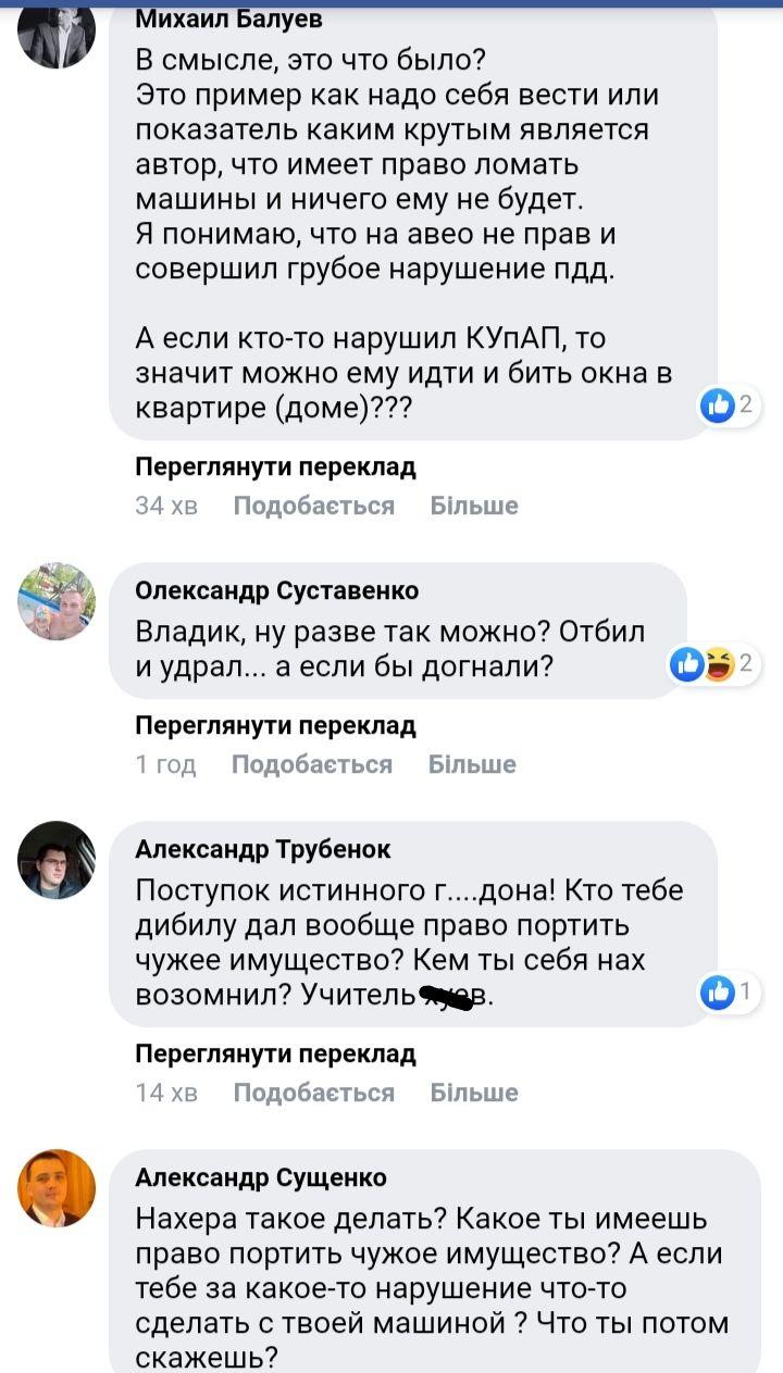"Конечно, такое нарушение может привести к необратимым последствиям, но это не значит, что можно распускать руки или наносить вред чужому имуществу. В противном случае может прилететь в ответ...", "На***а такое делать? Какое ты имеешь право портить чужое имущество? А если тебе за какое-то нарушение что-то сделать с твоей машиной? Что ты потом скажешь?", - пишут комментаторы.