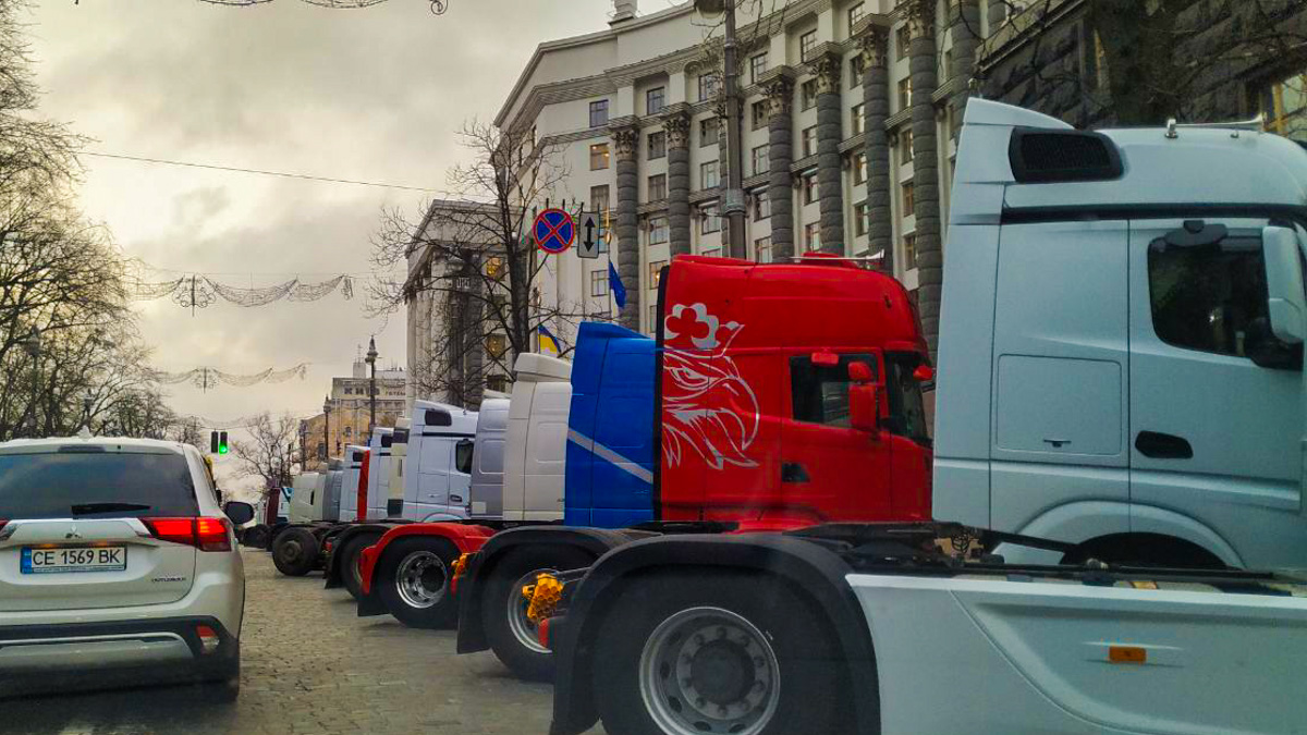 Утром 12 февраля на подъездах к Киеву и в самом центре столицы, возле Верховной Рады, собралось множество фур.