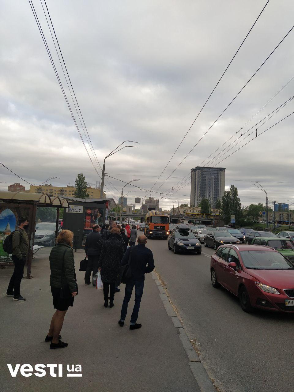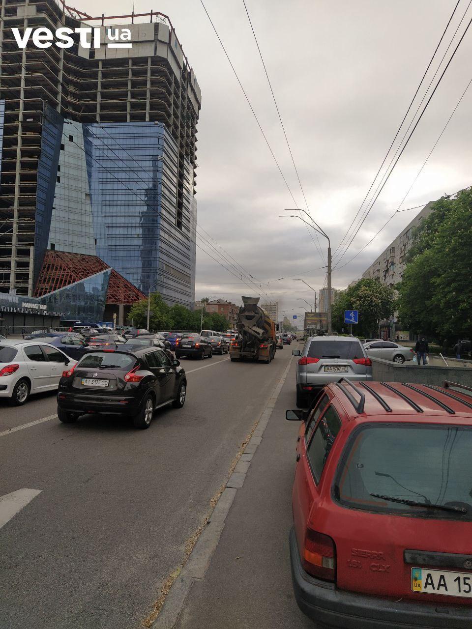 Фото большого затора на проспекте Победы в Киеве опубликованы в Telegram-канале "Вести".