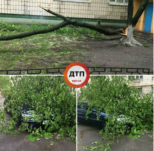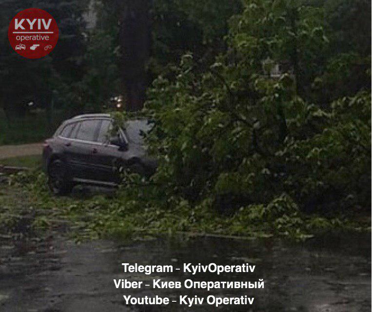 Так, на улице Владимира Покотило во время грозы на автомобиль упало дерево.