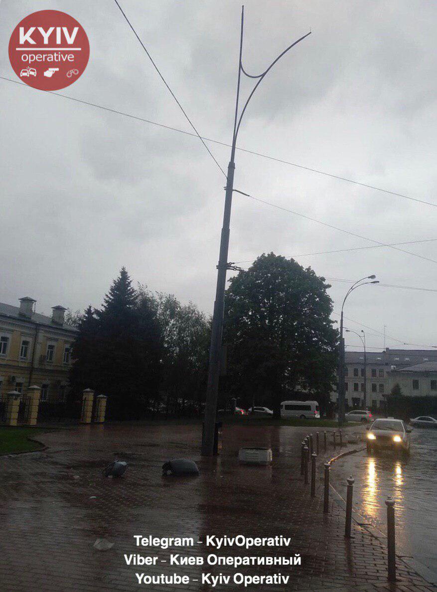Возле Лавры сразу два инцидента: дерево упало на припаркованный автомобиль, а со столба попадали лампы. К счастью, в обоих случаях тоже обошлось без пострадавших.