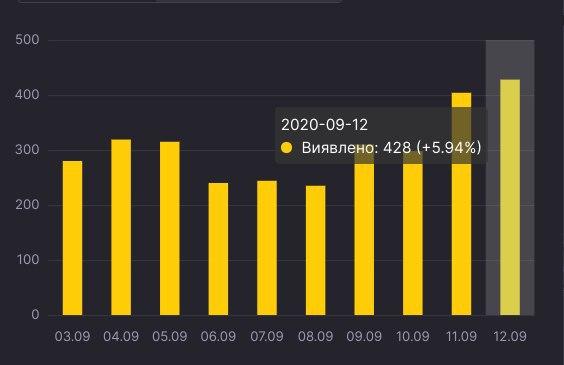 По состоянию на утро, 12 сентября, в Киеве 16951 подтвержденных случаев заболевания COVID-19, из них 428 за последние сутки.