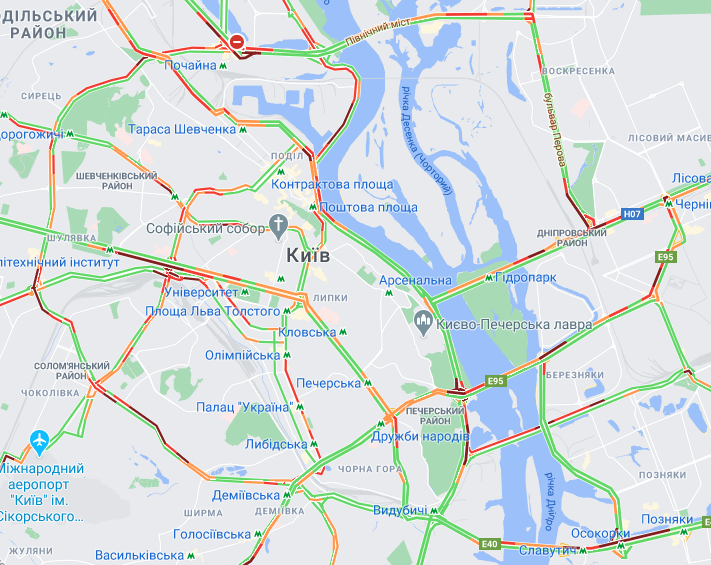 Так, пробки возникли на Северном мосту, Мосту Метро, на Броварском проспекте, на мосту Патона, на Дарницком мосту и Дарницком шоссе. Также есть заторы на Южном мосту, а основная пробка - на проспекте Бажана перед мостом и начинается от "Позняков".