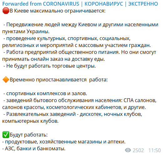 О подробностях карантина рассказали в Telegram-канале "Coronavirus".