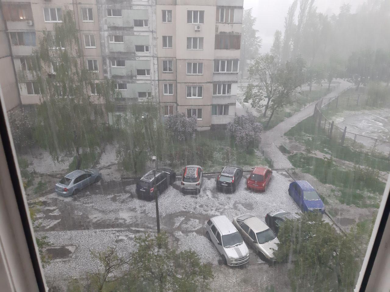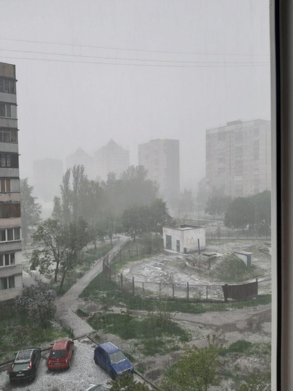 В частности, в соцсетях пишут, что град шел на Оболони, на улице Героев Днепра. По словам очевидцев, град достигал размеров куриного яйца.