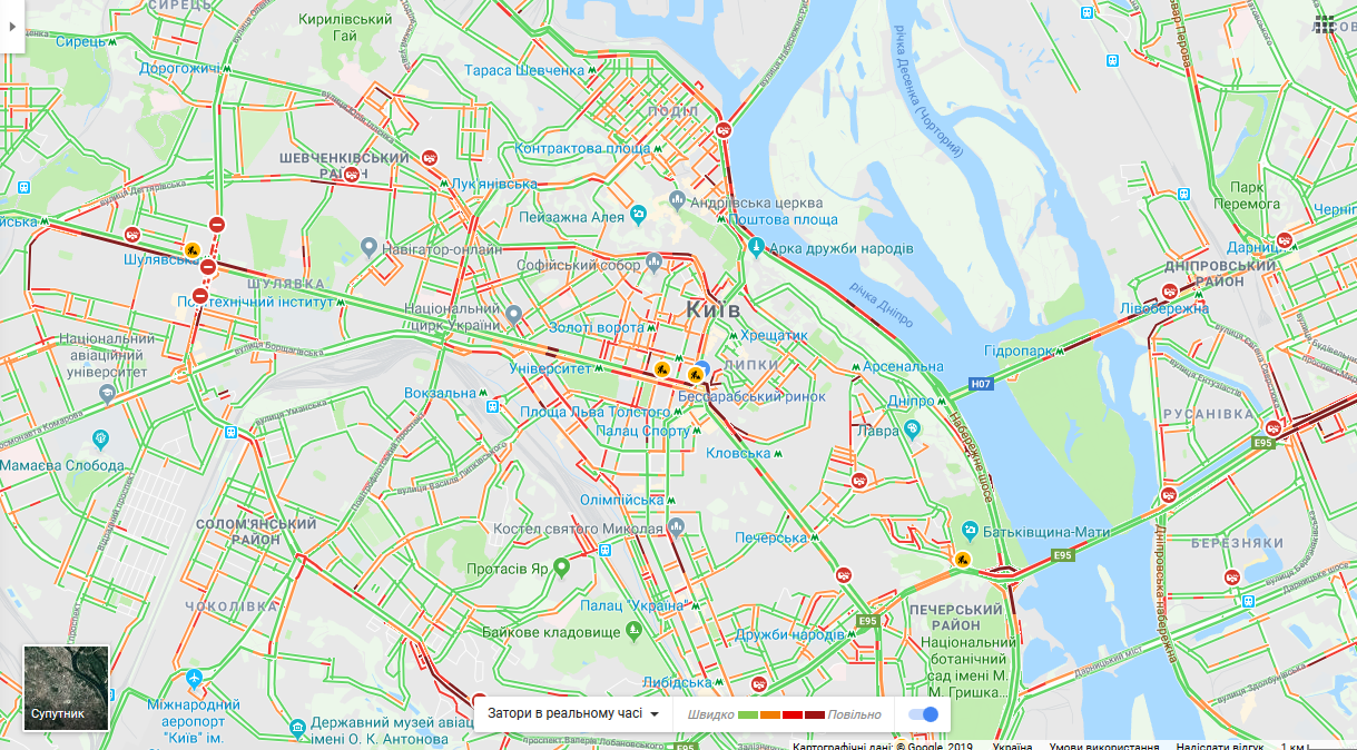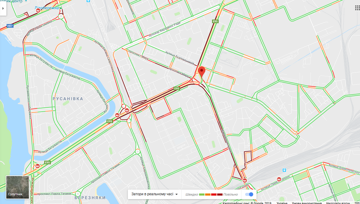 Так, на Левом берегу возникла громадные пробки из-за серьезных аварий. Два ДТП случились на пр. Соборности и еще одно на Харьковском шоссе, обе дороги ведут к Дарницкой площади.