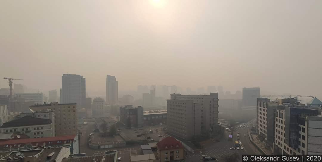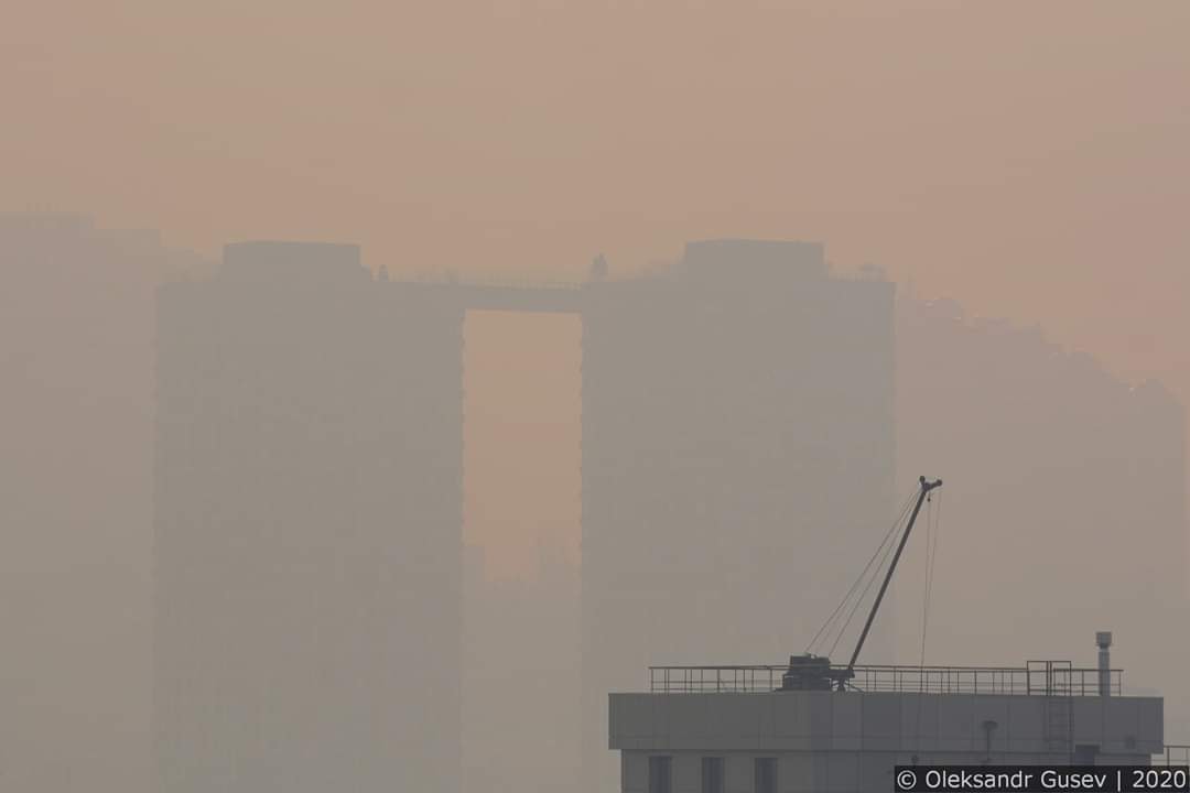 В сети появились свежие фото окутанного дымом Киева, загрязненность воздуха рекордно высокая.