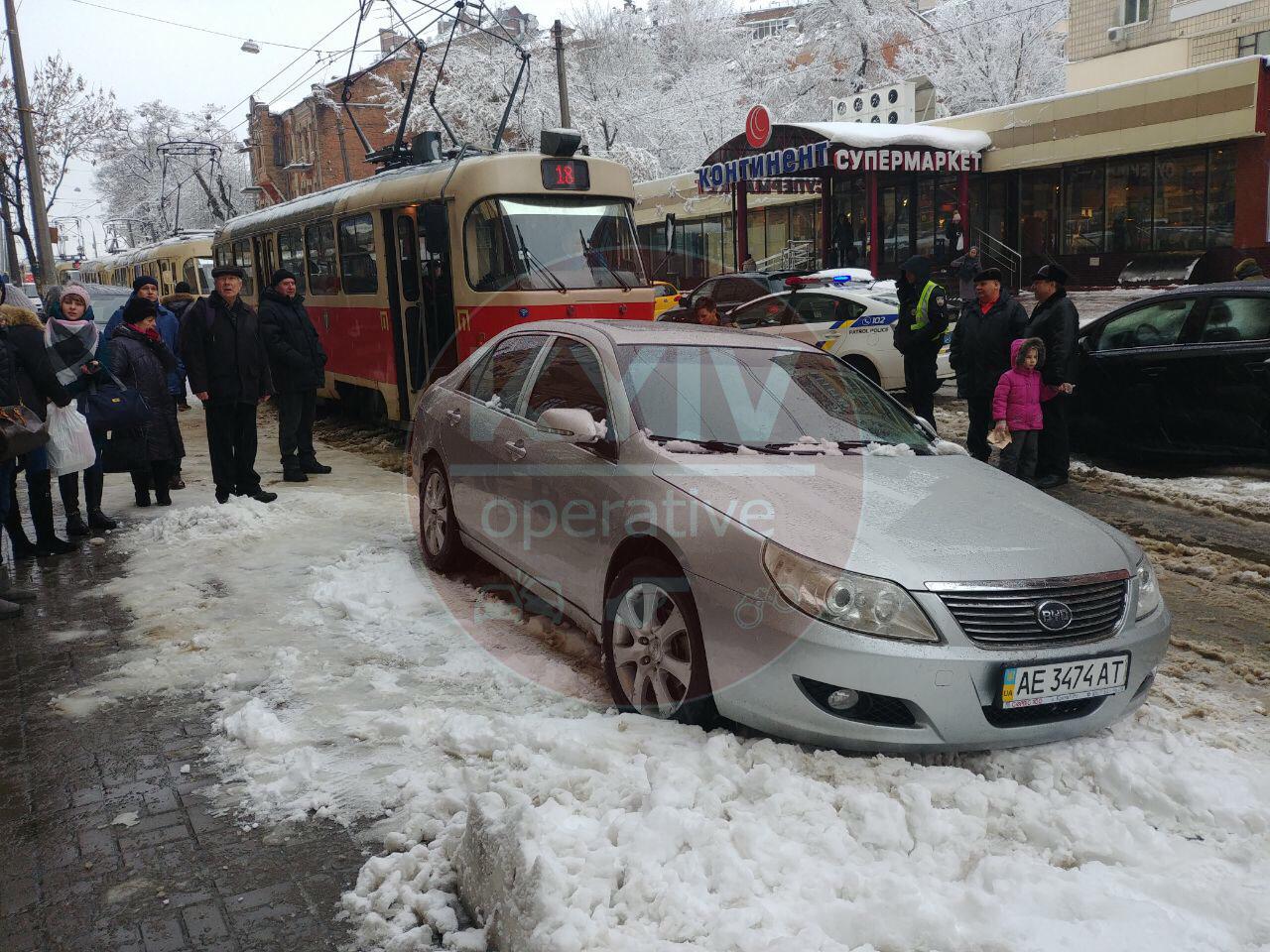 "15 и 14 трамваи стоят из-за мастера парковки на Skoda (AA0448II)... Полиция уже на месте", - говорится в сообщении.